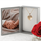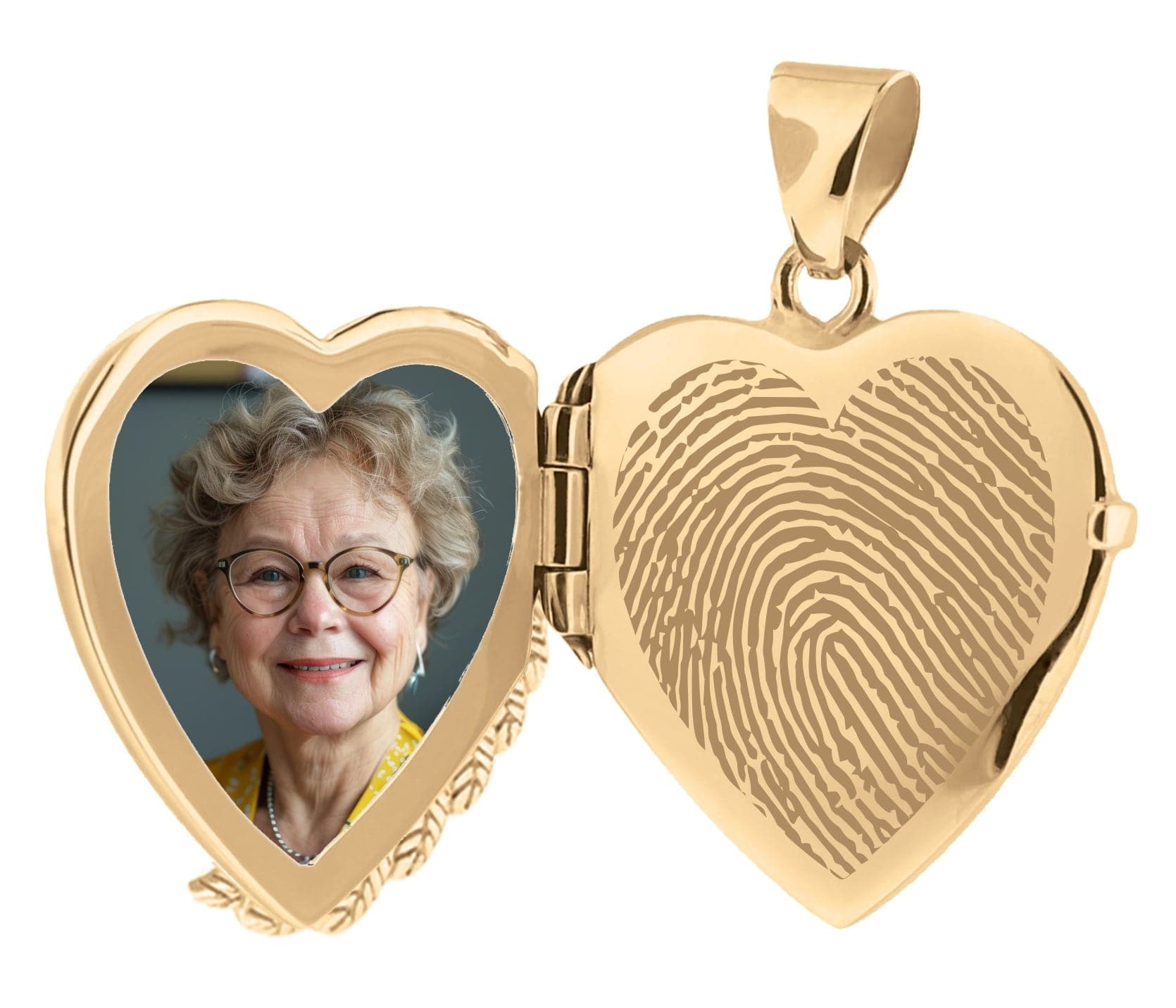 Follow the prompts to upload a photograph and add your engraving details. The photo will be inserted into the locket and your text or fingerprint will be engraved as per your instructions.