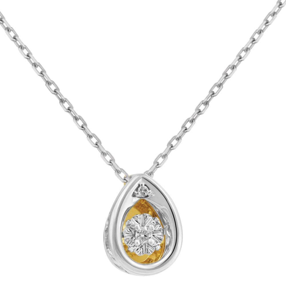 White gold tear drop fingerprint necklace with a stunning center stone suspended in a unique quiver setting.