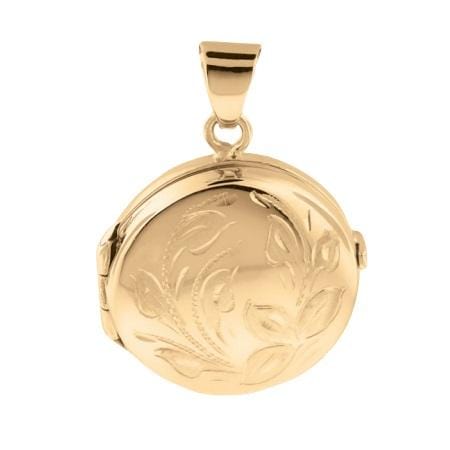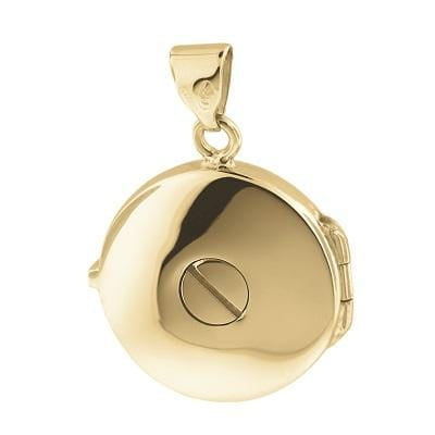 - 10 Karat Yellow Gold Locket Urn - 'Trillium'. Open locket to reveal photo and engraving. The safety chamber that holds cremated ashes is accessed through a screw in the back of the locket.
