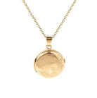 Hand engraved trilliums are etched into the front of this round 10K gold locket urn.