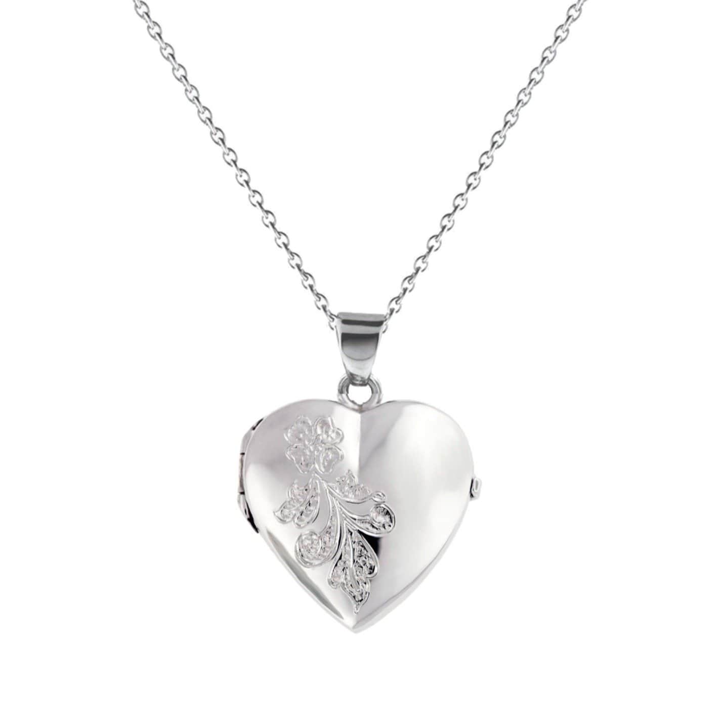 Hand engraved forget-me-flowers are etched into the front of this heart-shaped locket urn. This necklace for ashes, hair or any other memento you wish to keep close to your heart.