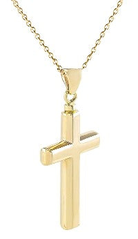 - Gold Cross Pendant Urn (10K) Necklace. The safety chamber that holds cremated ashes is accessed through a screw at the top of the pendant.