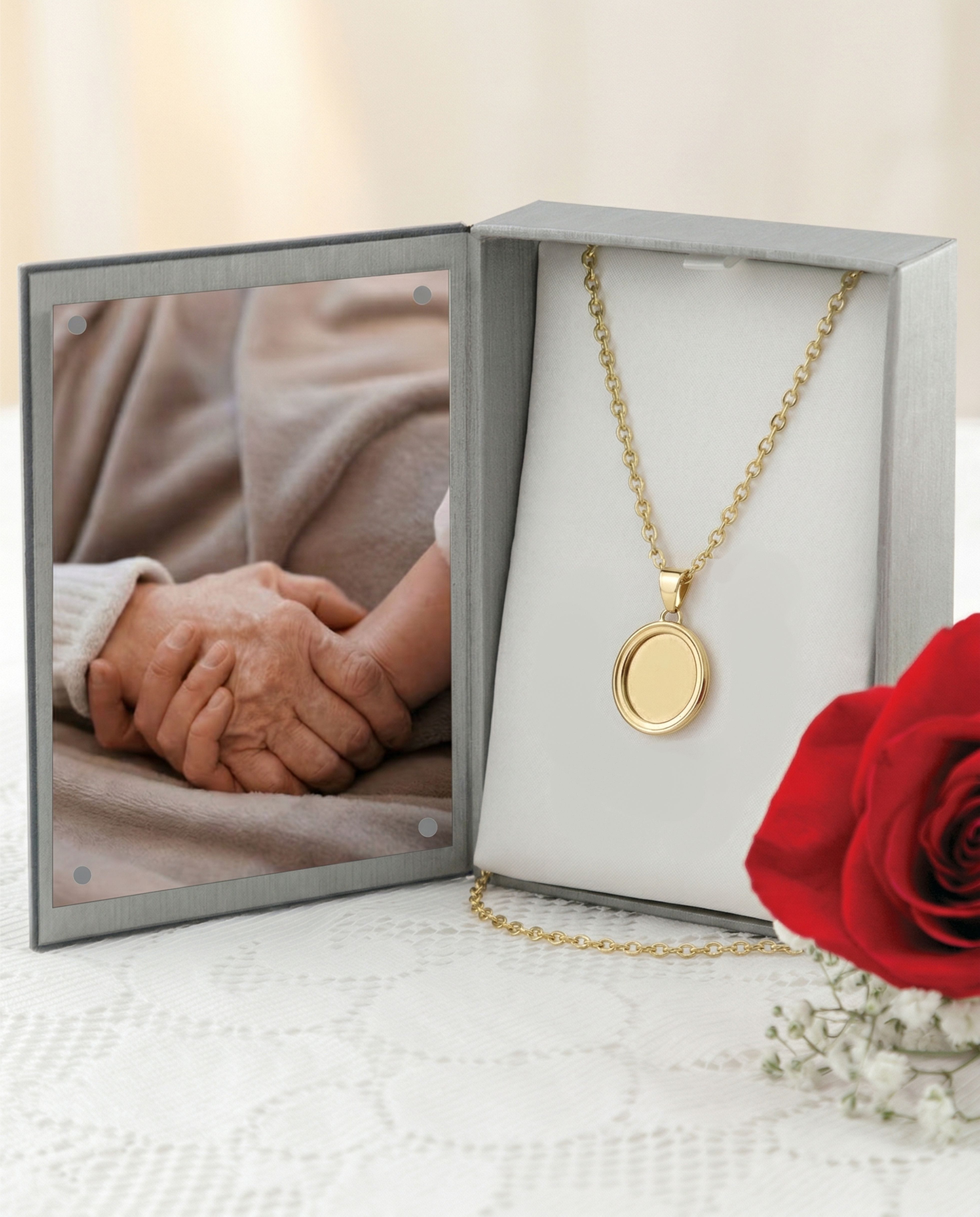 - Jewellery Box included, holds a photo and your fingerprint necklace (see photo).