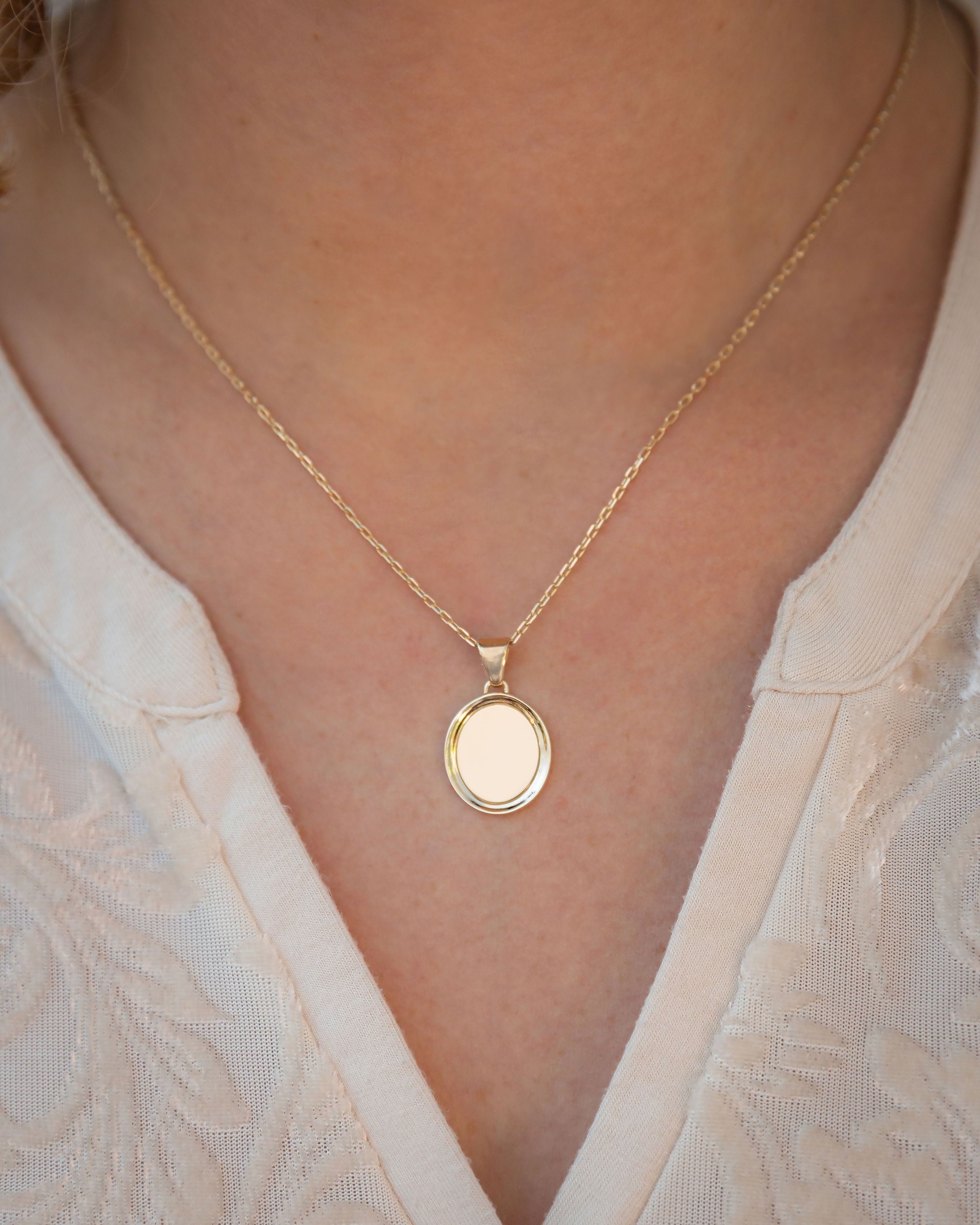 Personalize your pendant with a fingerprint. Additional text can be engraved on the back: custom text, copy of a loved one's handwriting or clipart memorabilia.