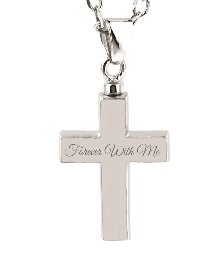 • Sterling Silver Hammered Silver Cross Pendant Urn Necklace. The safety chamber that holds cremated ashes is accessed through a screw at the top of the pendant.