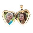- 10 Karat Yellow & White Gold Heart Locket - 'Heirloom'. Open locket to reveal two photos; text engraving on back of locket.