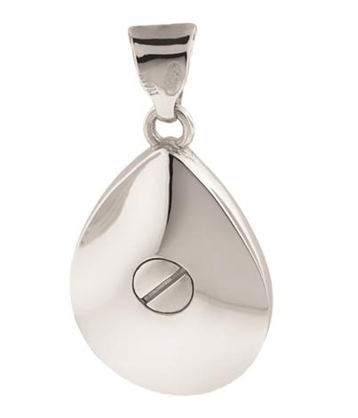 - Sterling Silver 'Poppy' Teardrop Pendant Urn. The safety chamber that holds cremated ashes is accessed through a screw in the back of the pendant.