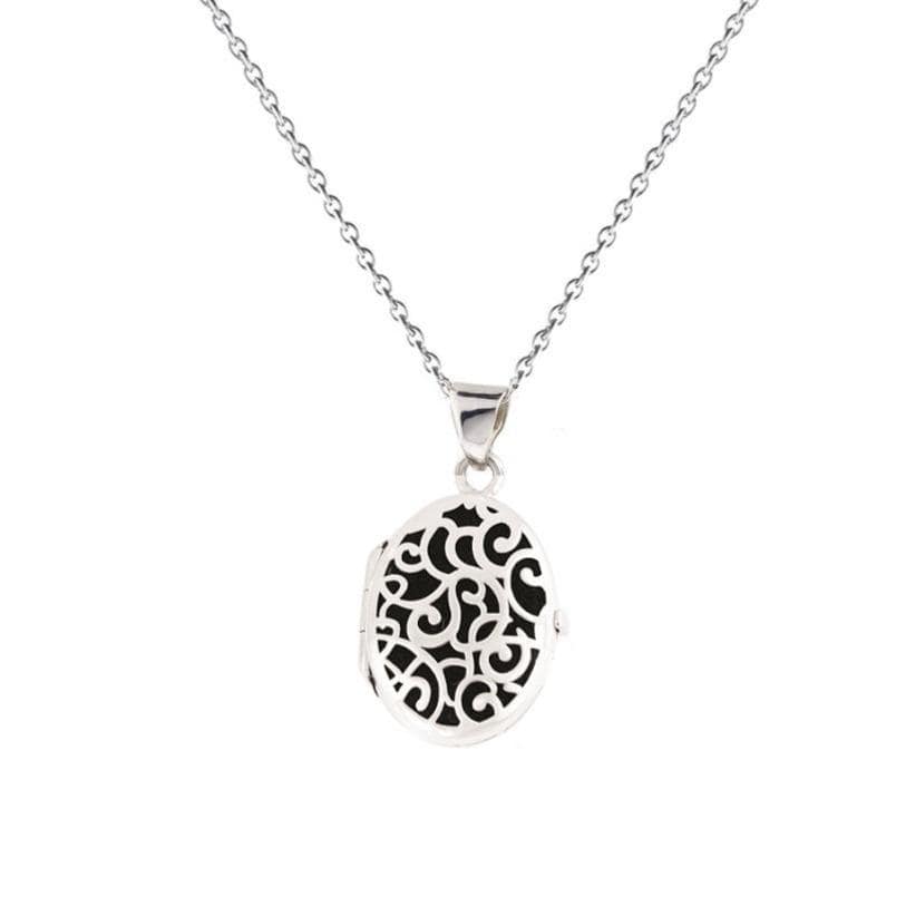 - Sterling Silver Filigree Oval Locket Urn. Open locket to reveal photo and engraving. The safety chamber that holds cremated ashes is accessed through a screw in the back of the locket.