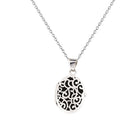 Delicate filigree design on the front of this Oval-shaped locket urn necklace for ashes. Choose your inset colour - black, turquoise or magenta from the dropdown list. Locket opens to reveal picture on one side and engraving or fingerprint on the other.