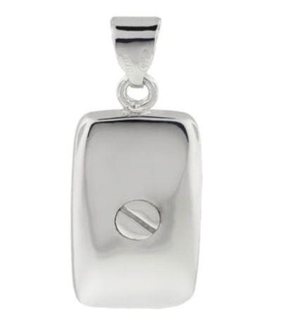- Sterling Silver Rectangle Pendant Urn. The safety chamber that holds cremated ashes is accessed through a screw in the back of the pendant.