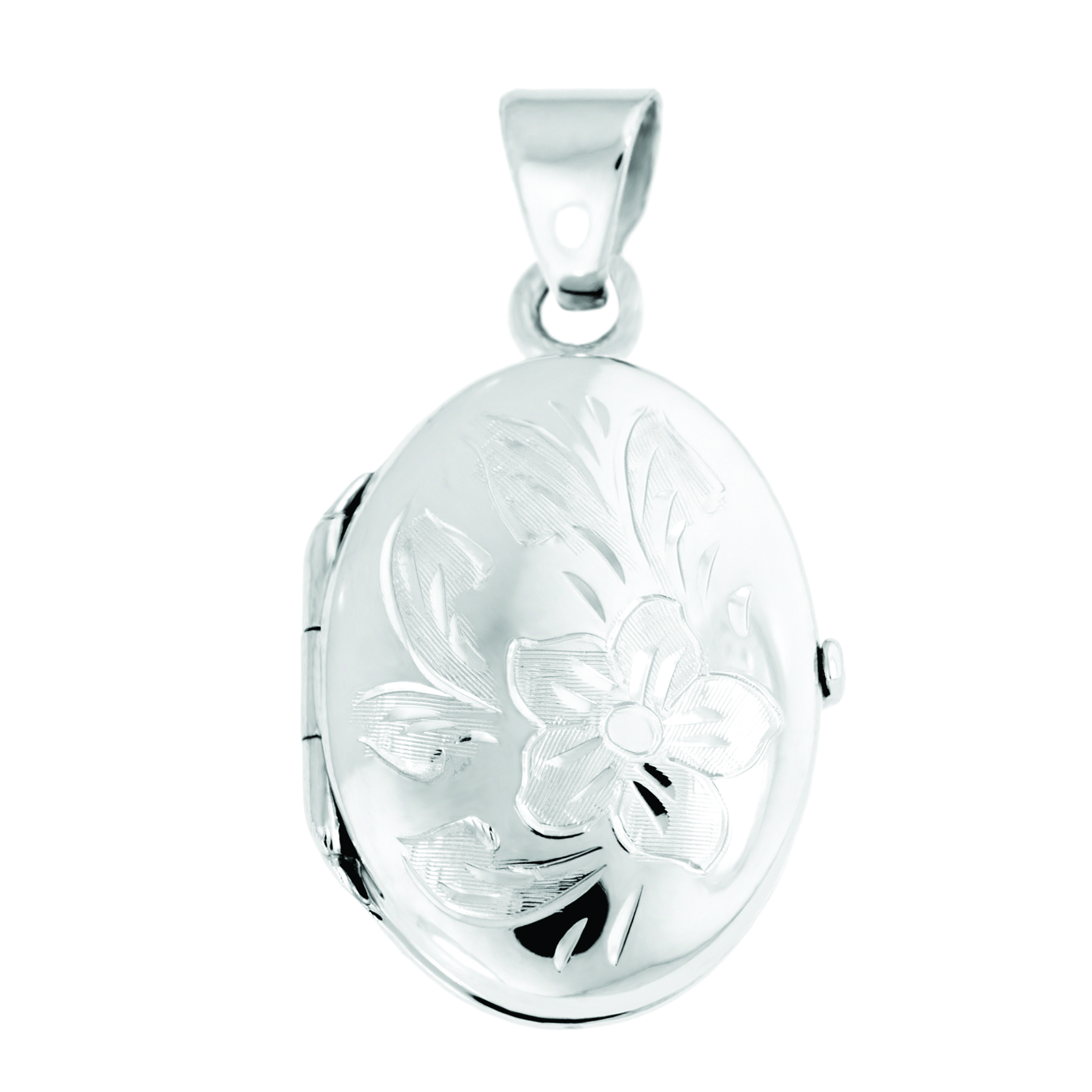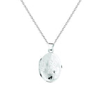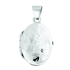 Hand engraved wildflowers are etched into the front of this oval-shaped classic silver locket.