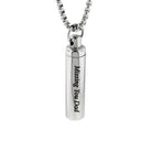 - Stainless Steel Cylinder Pendant. The safety chamber that holds cremated ashes is accessed through a screw at the top of the pendant.